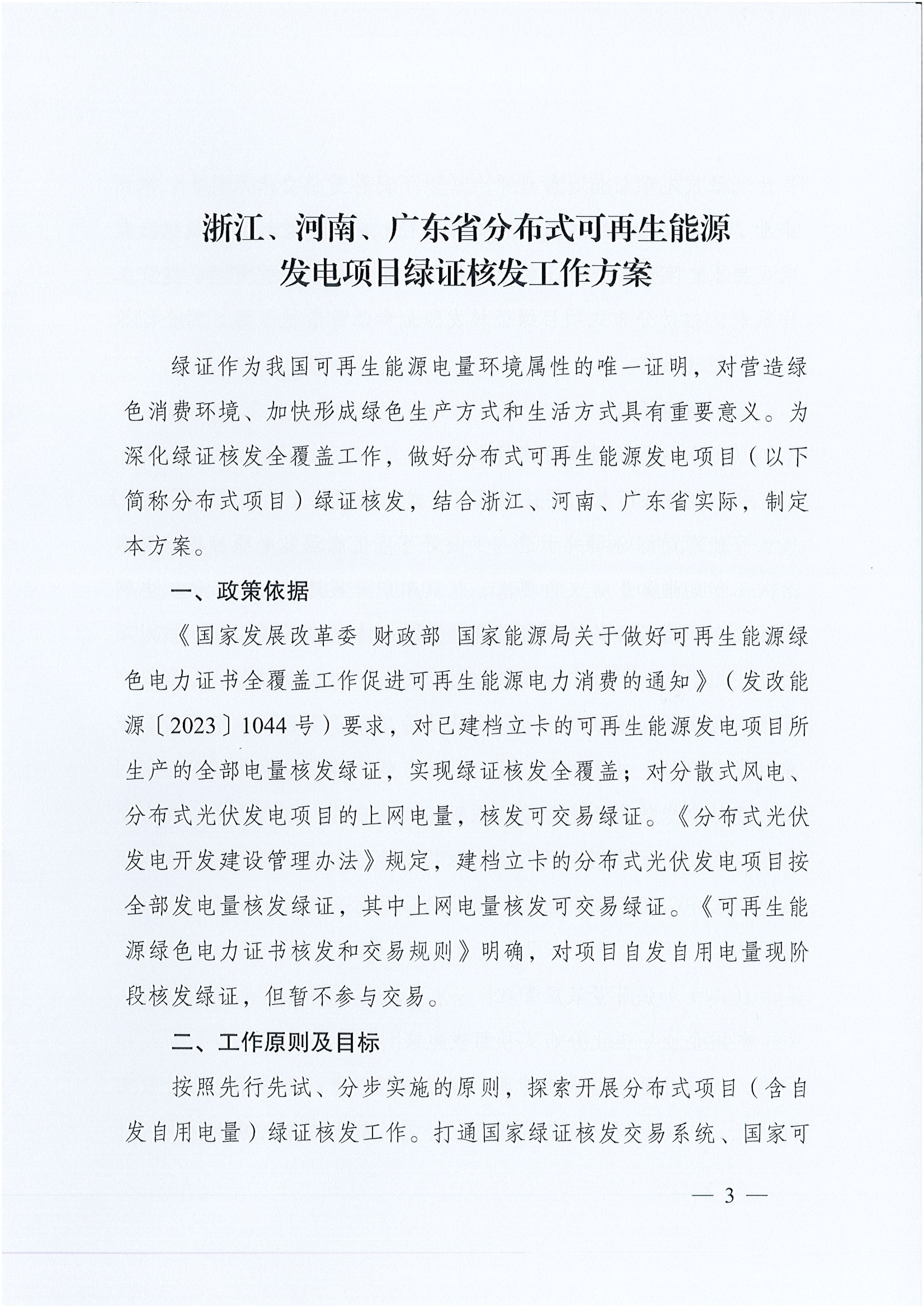 国家能源局综合司关于印发《浙江、河南、广东省分布式可再生能源发电项目绿证核发工作方案》的通知